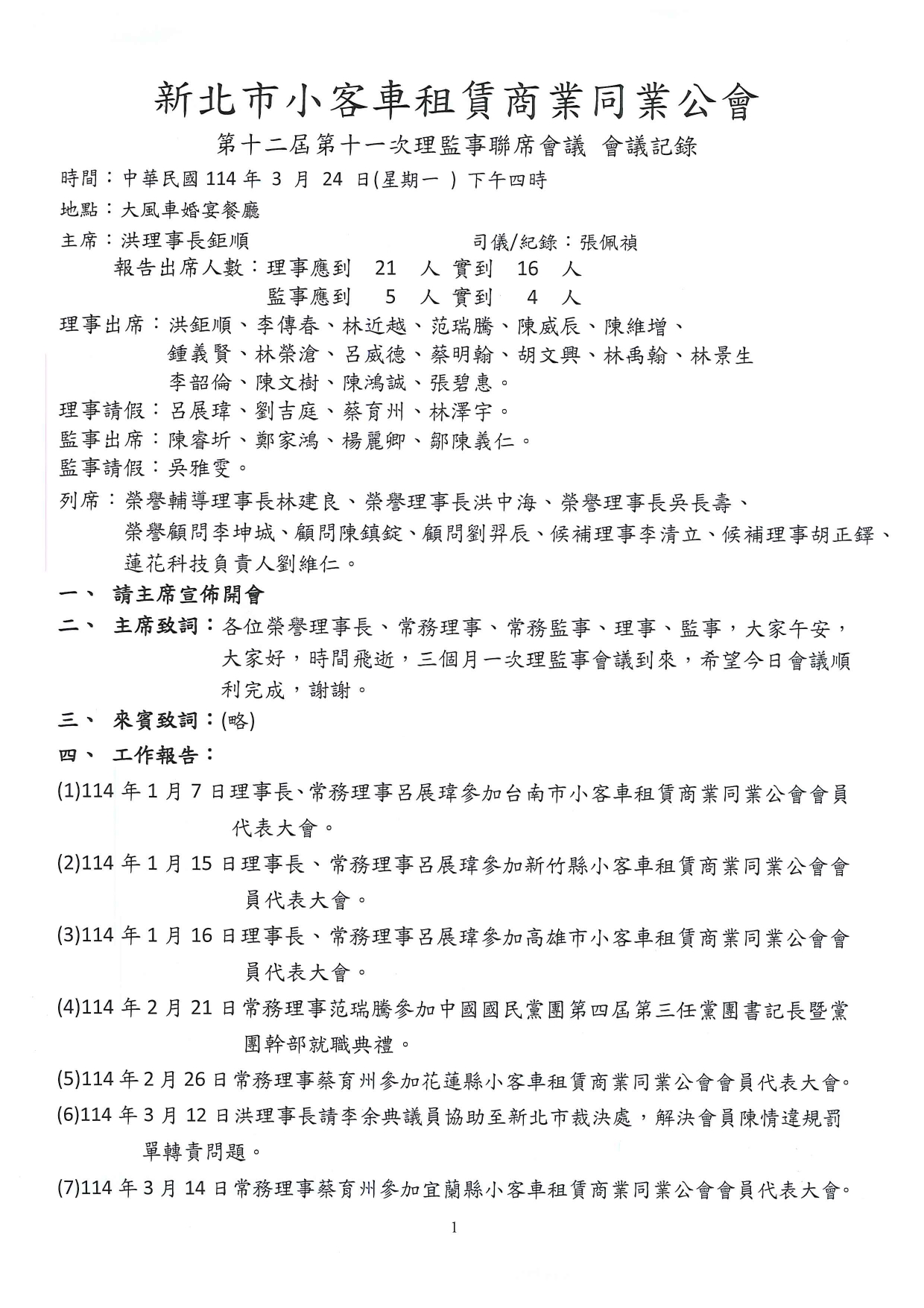 第十二屆第十一次理監事聯席會議 會議紀錄