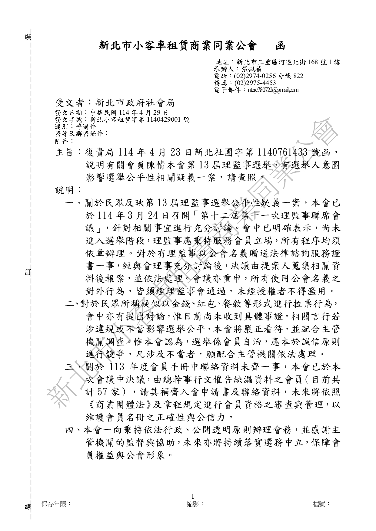 會員陳情本會第13屆理監事選舉,有選舉人意圖影響選舉公平性相關疑義一案