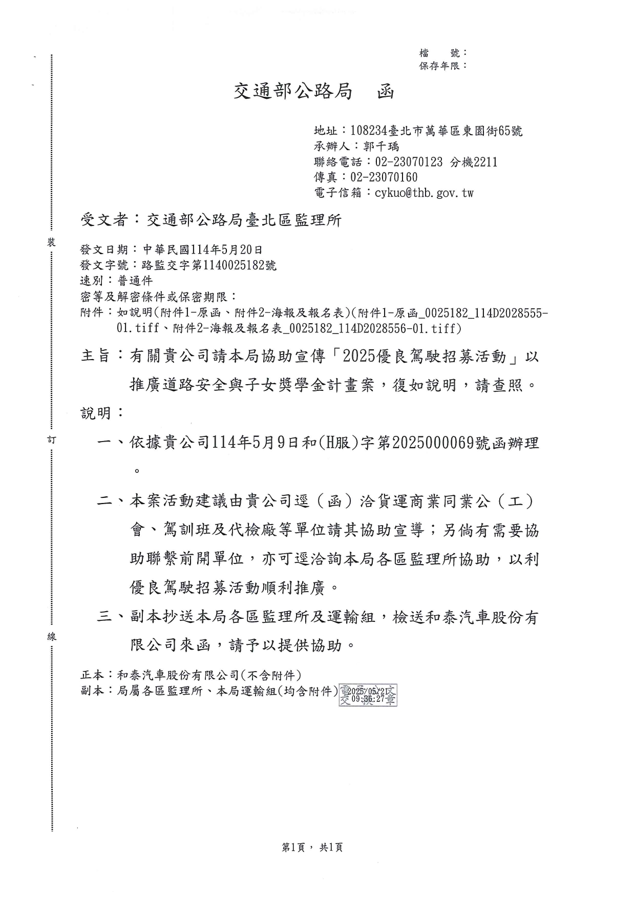 和泰汽車股份有限公司2025優良駕駛招募活動