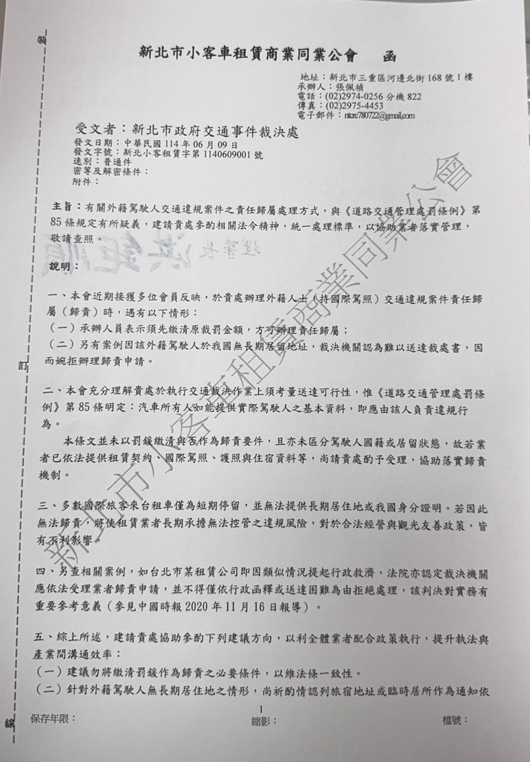 有關外籍駕駛人交通違規案件之責任歸屬處理方式,與道路交通管理處罰條例第85條疑義