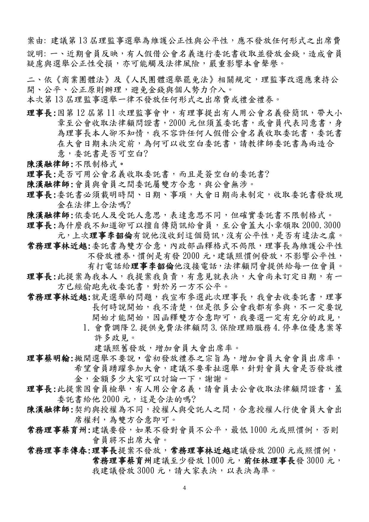 第十二屆第十二次理事會會議紀錄存查備考