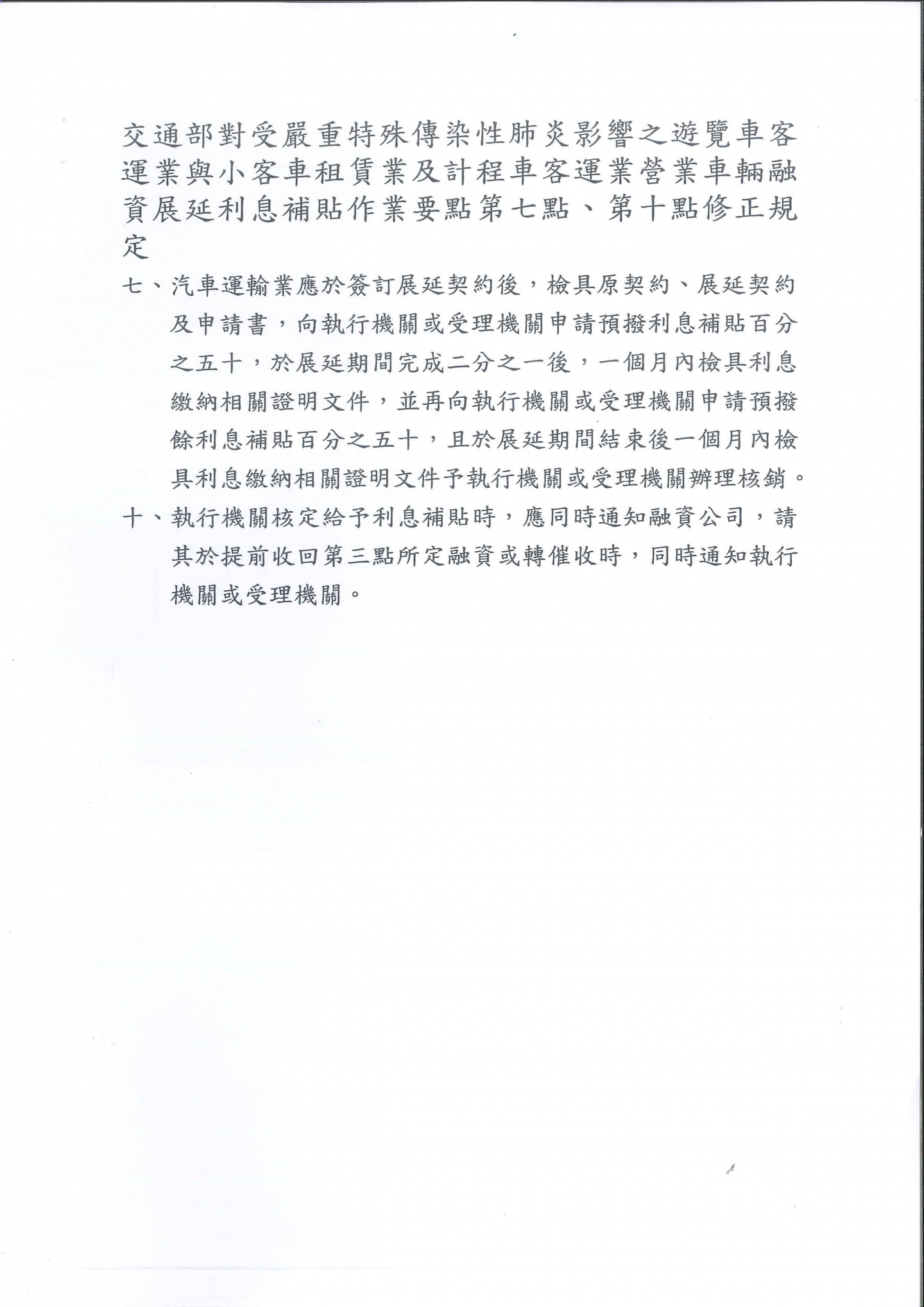 本業融資展延利息補貼作業要點修正