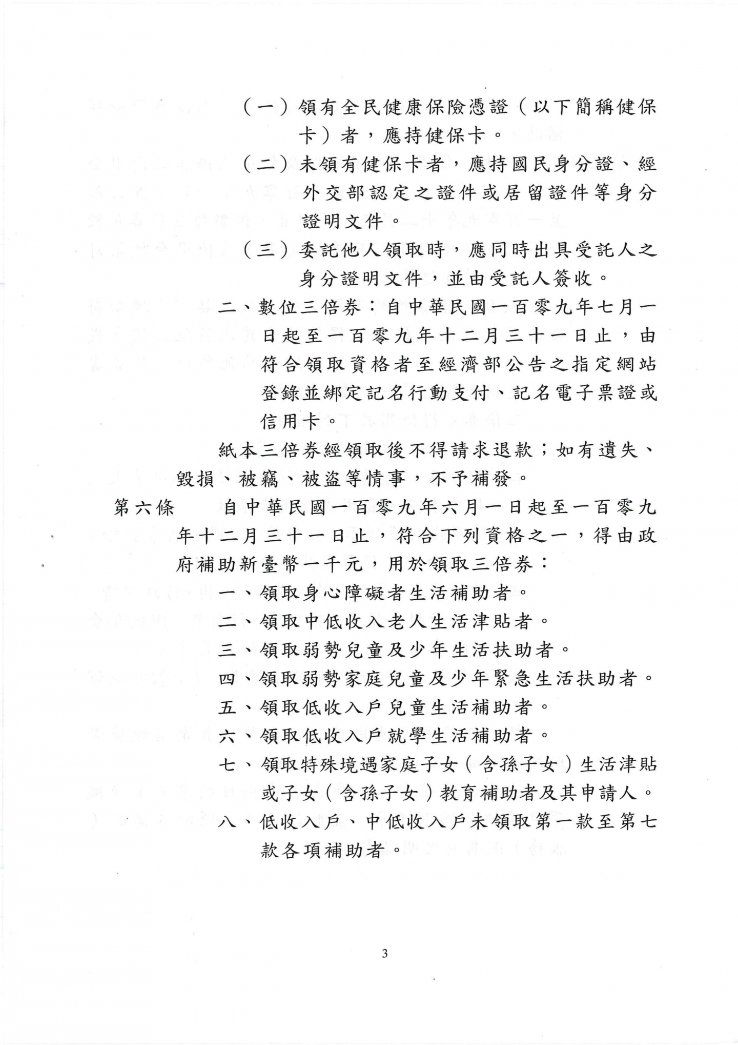 因應嚴重特殊傳染性肺炎振興三倍卷發放辦法