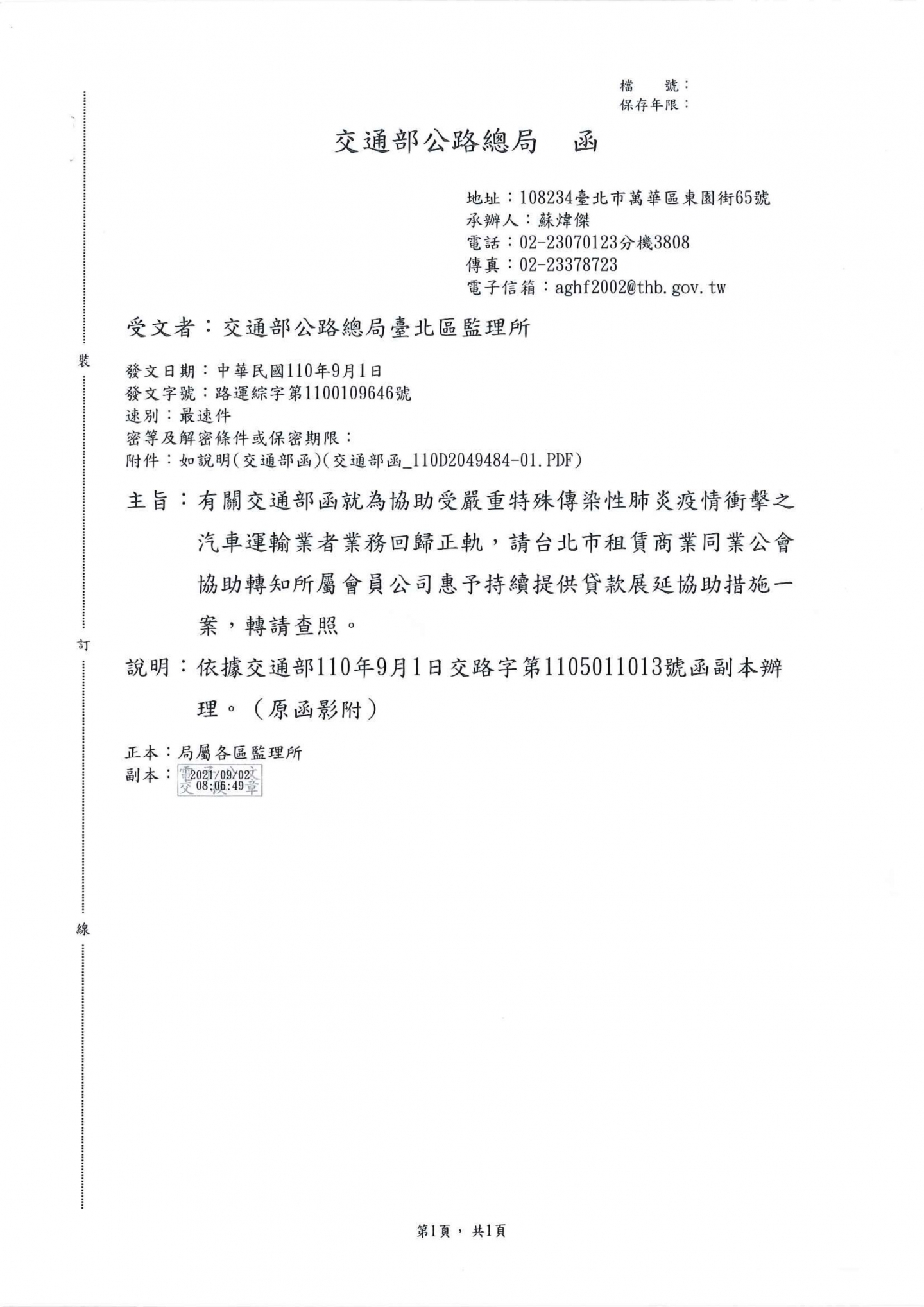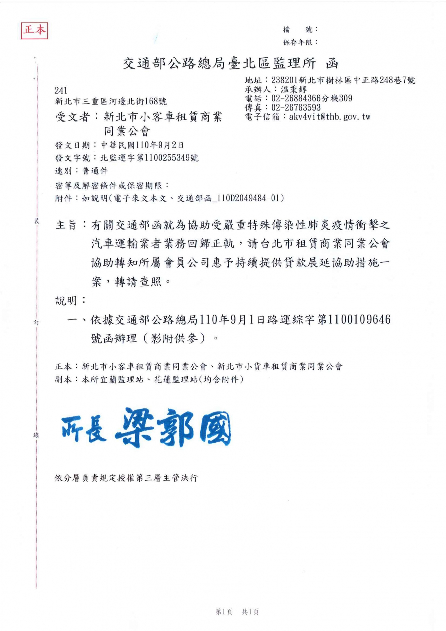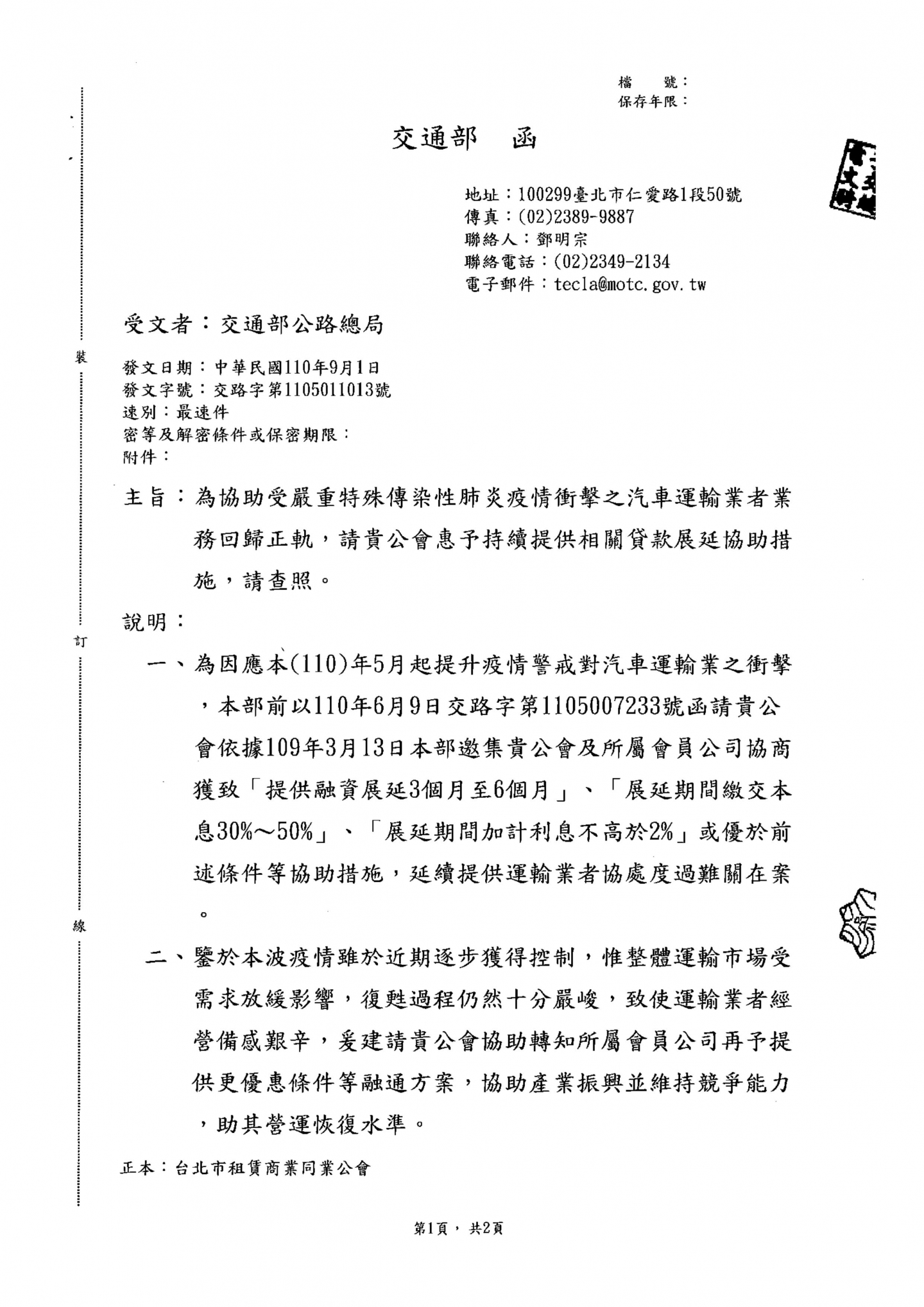 函轉交通部請台北市租賃商譽同業公會協助惠予提供貸款展延協助措施轉知會員知悉