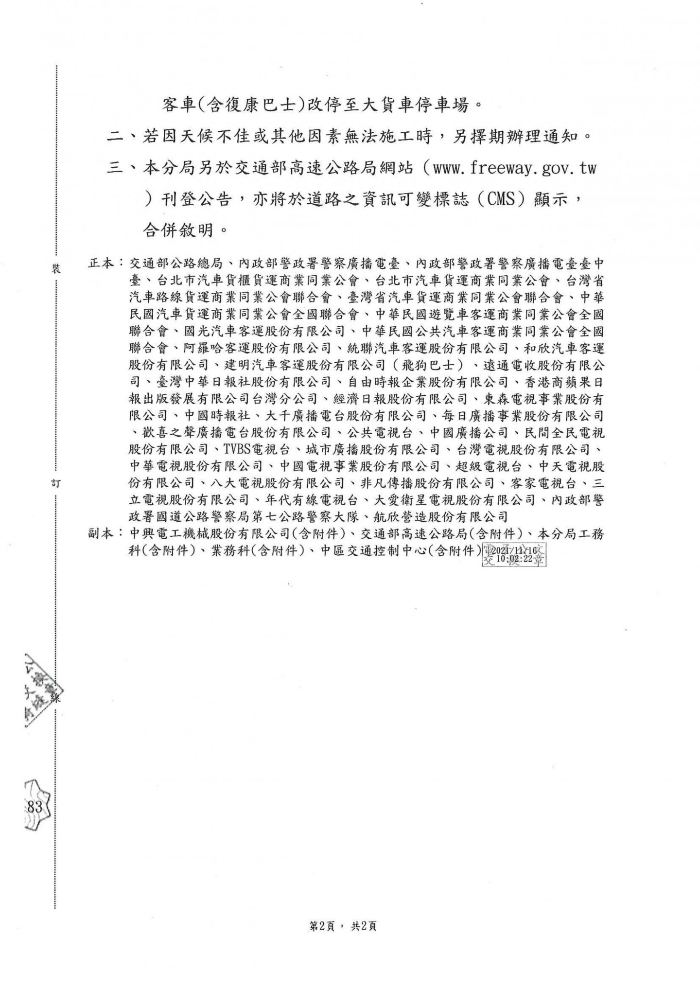 函轉高公局中區養護工程分局辦理國道3號清水服務區停車場設置電動車充電椿施工新聞稿一案