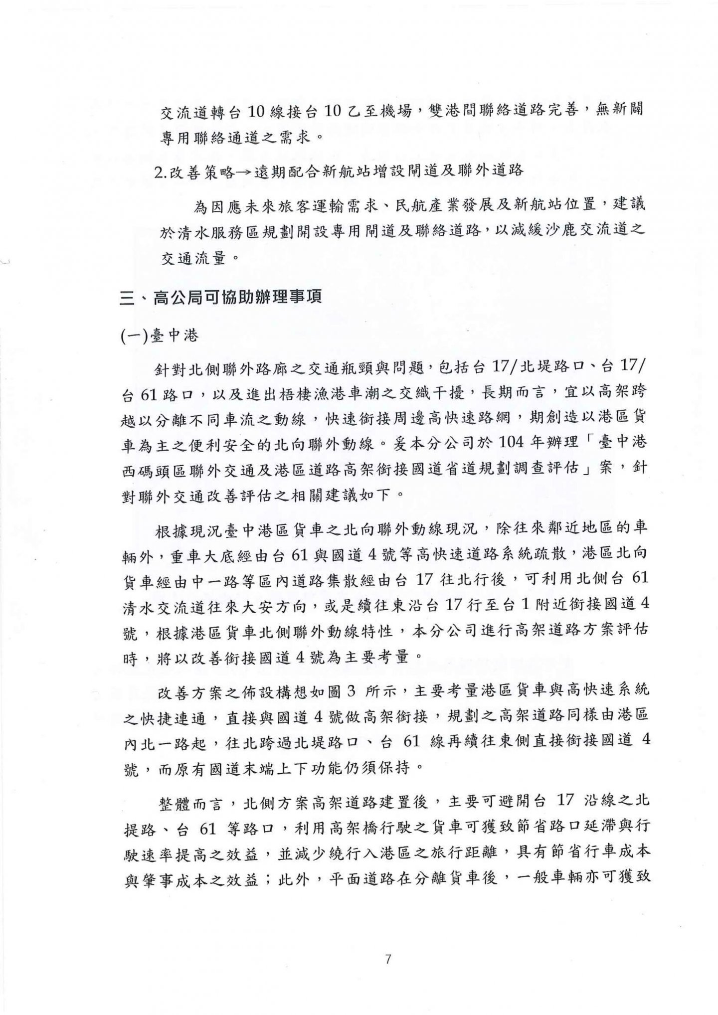 函轉台灣港務股份有限公司檢送台中雙港交通需求規劃報告1份