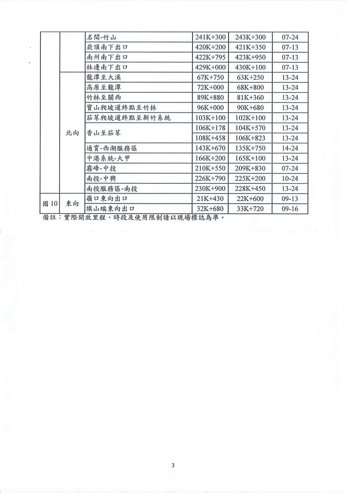 函轉高公局檢送111年端午節連假國道交通疏導措施一覽表