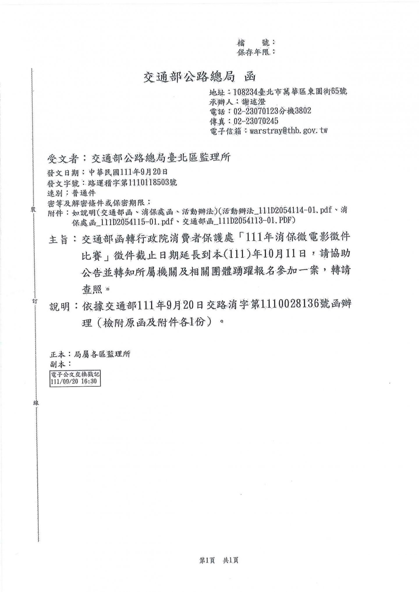 函轉行政院消費者保護處111年消保微電影徵件比賽暨消費者保護研究第27輯徵稿啟事1份轉知會員知悉