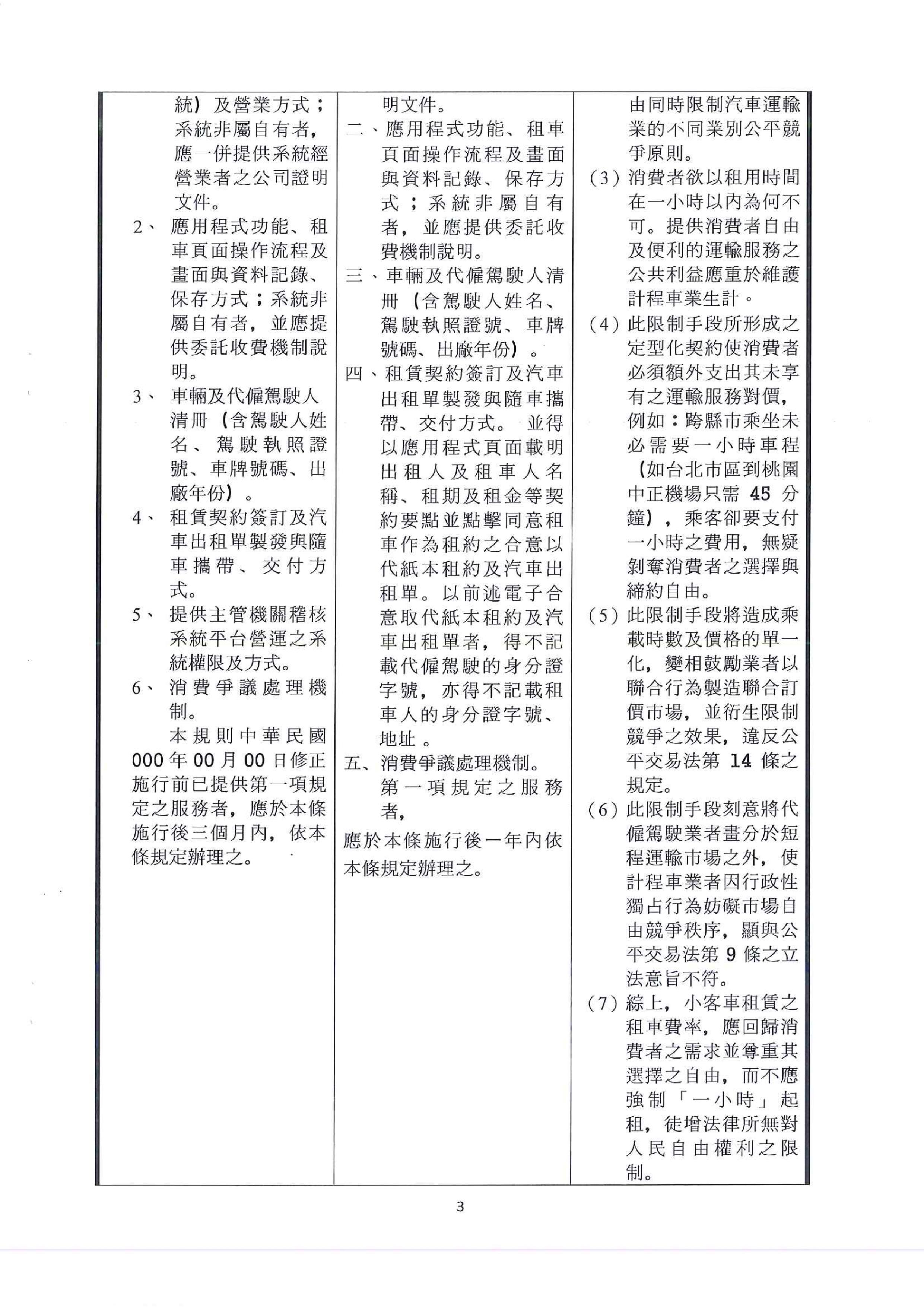汽車運輸業管理規則第103條之1公告修訂提出本業意見
