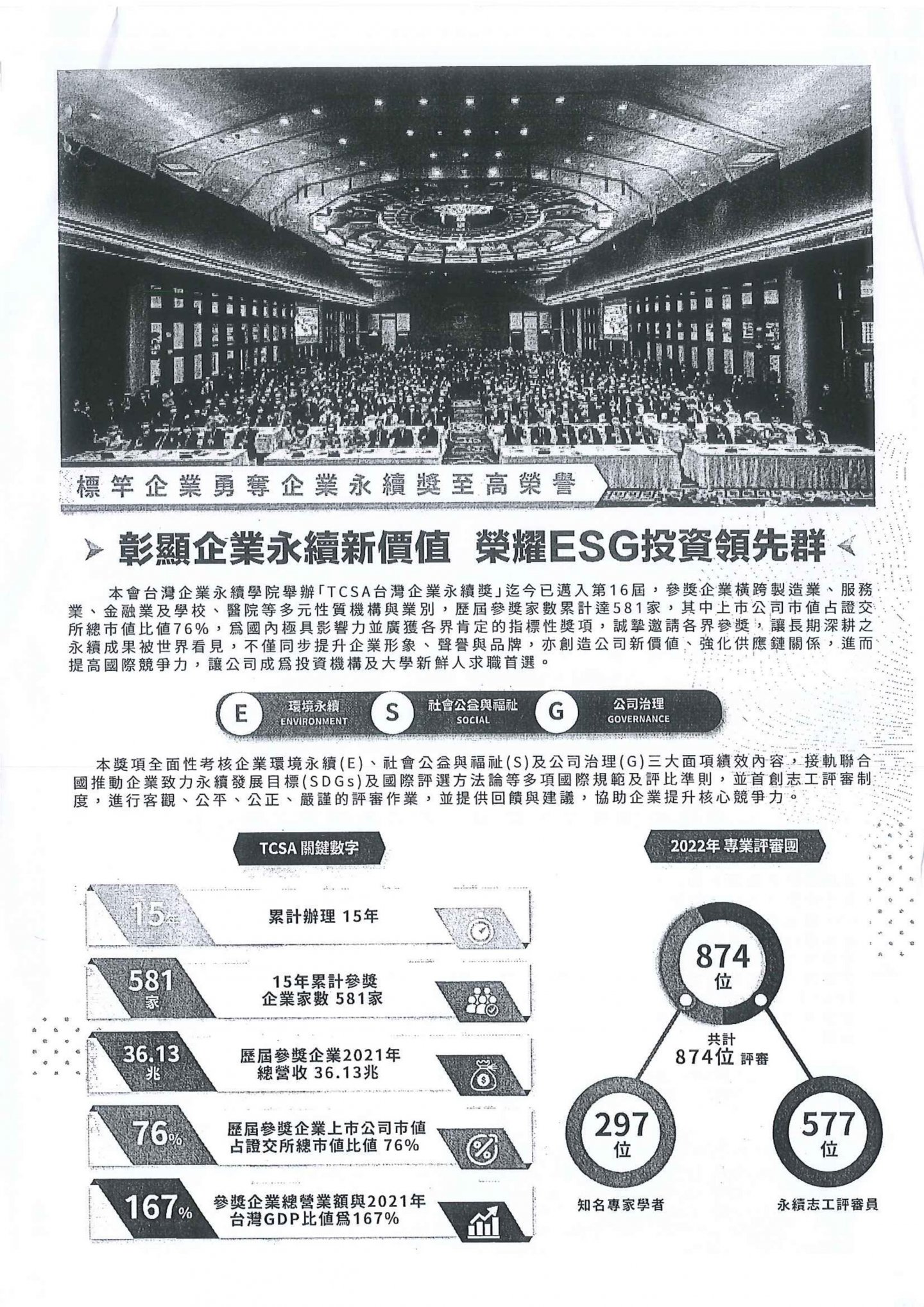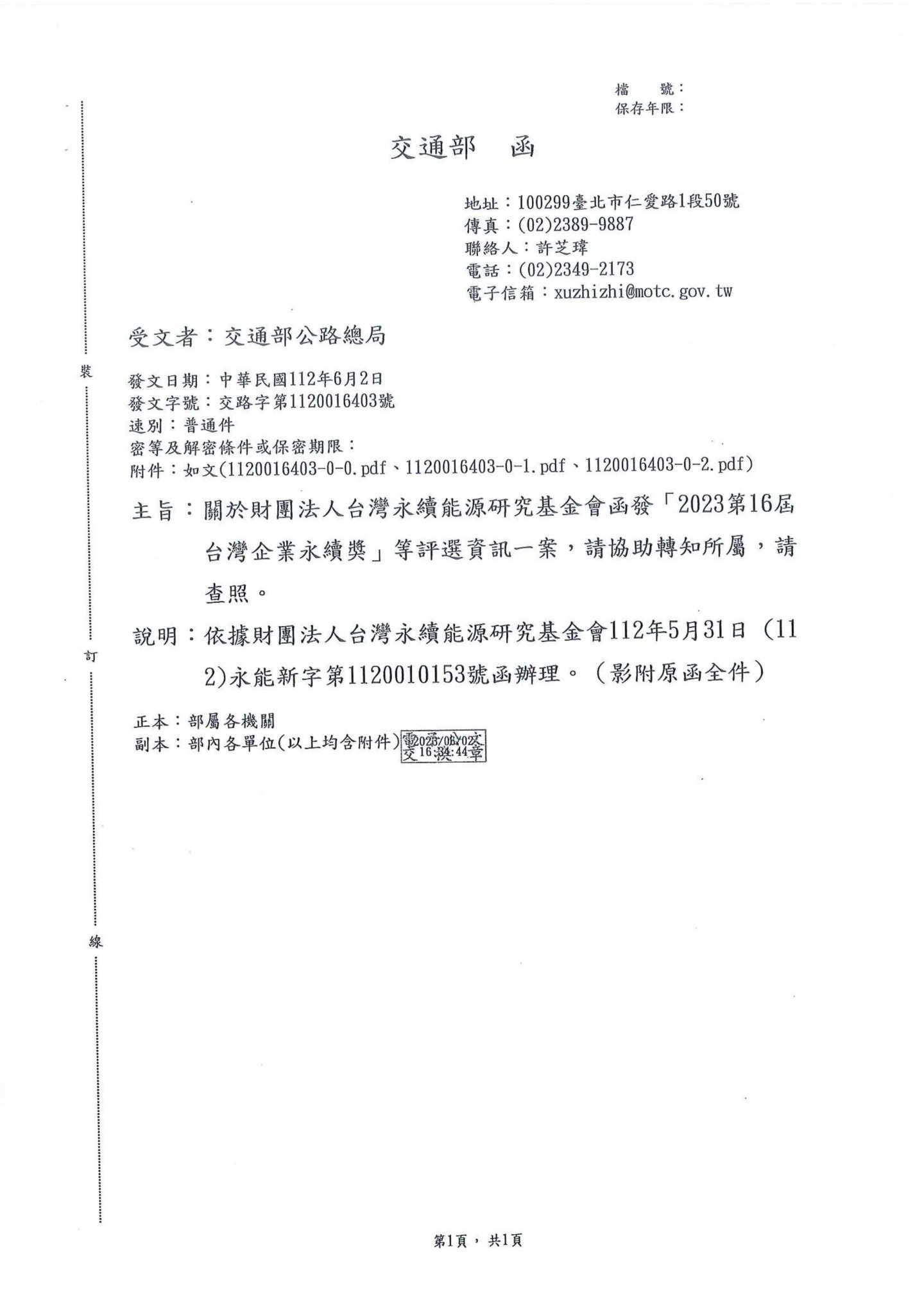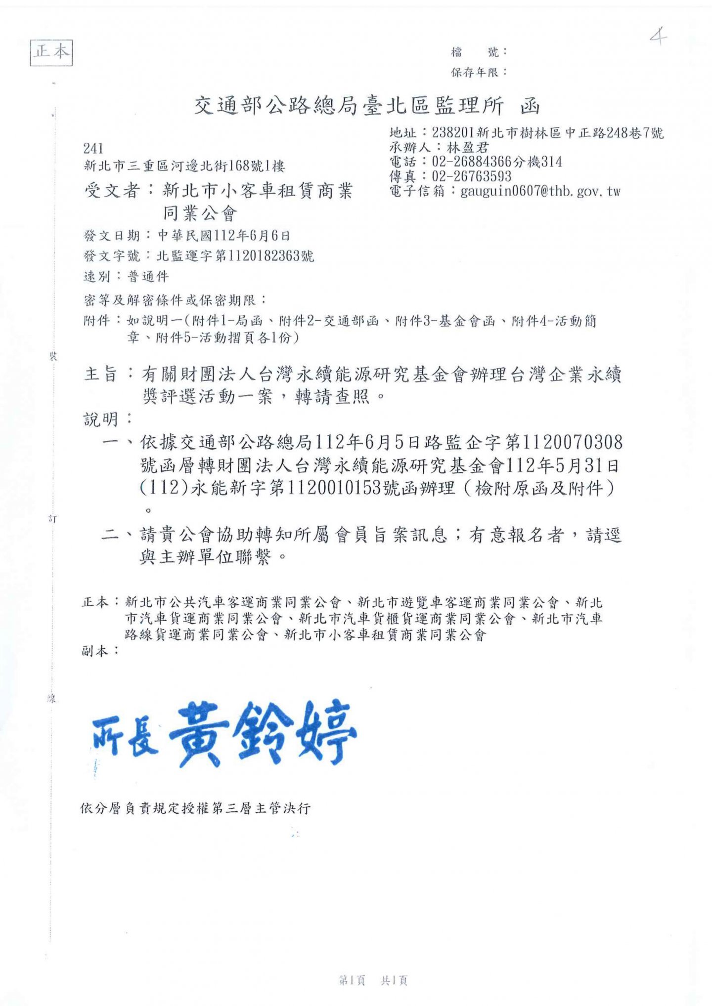 函轉台北區監理所有關財圖法人台灣永續能源研究基金會辦理台灣企業永續獎評選活動一案