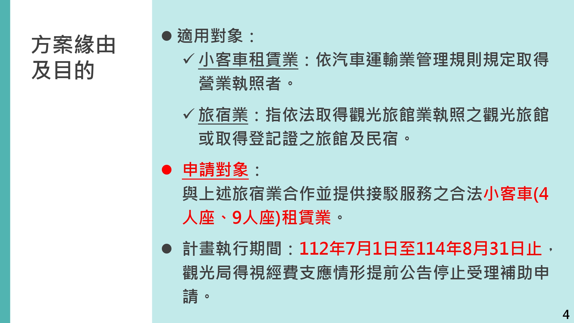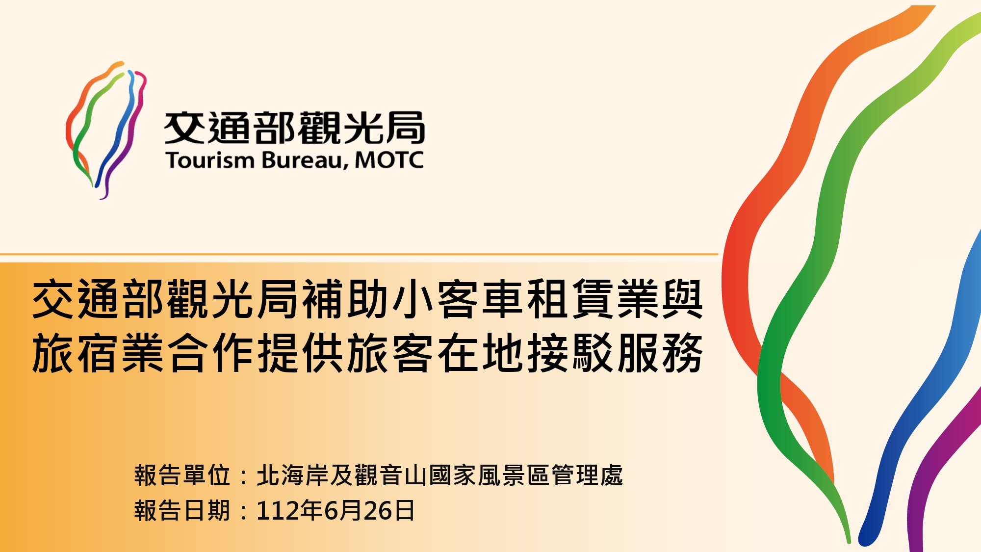 交通部觀光局補助小客車租賃業與旅宿業合作提供旅客在地接駁服務說明簡報