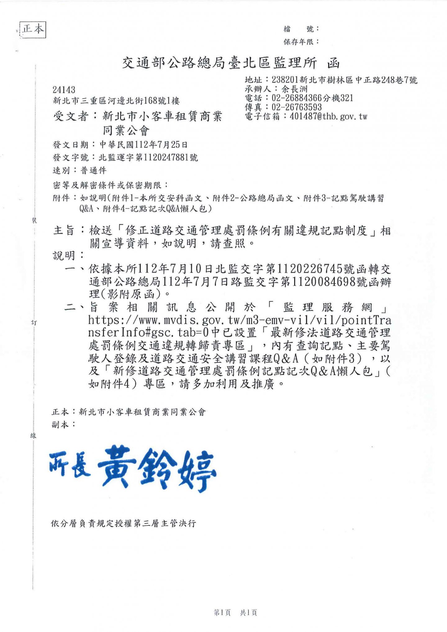檢送修正道路交通管理處罰條例有關違規記點制度相關宣導資料轉知會員知悉