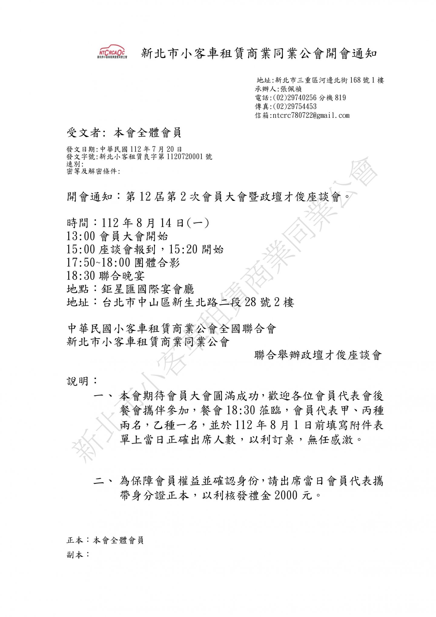 第十二屆第二次會員大會通知