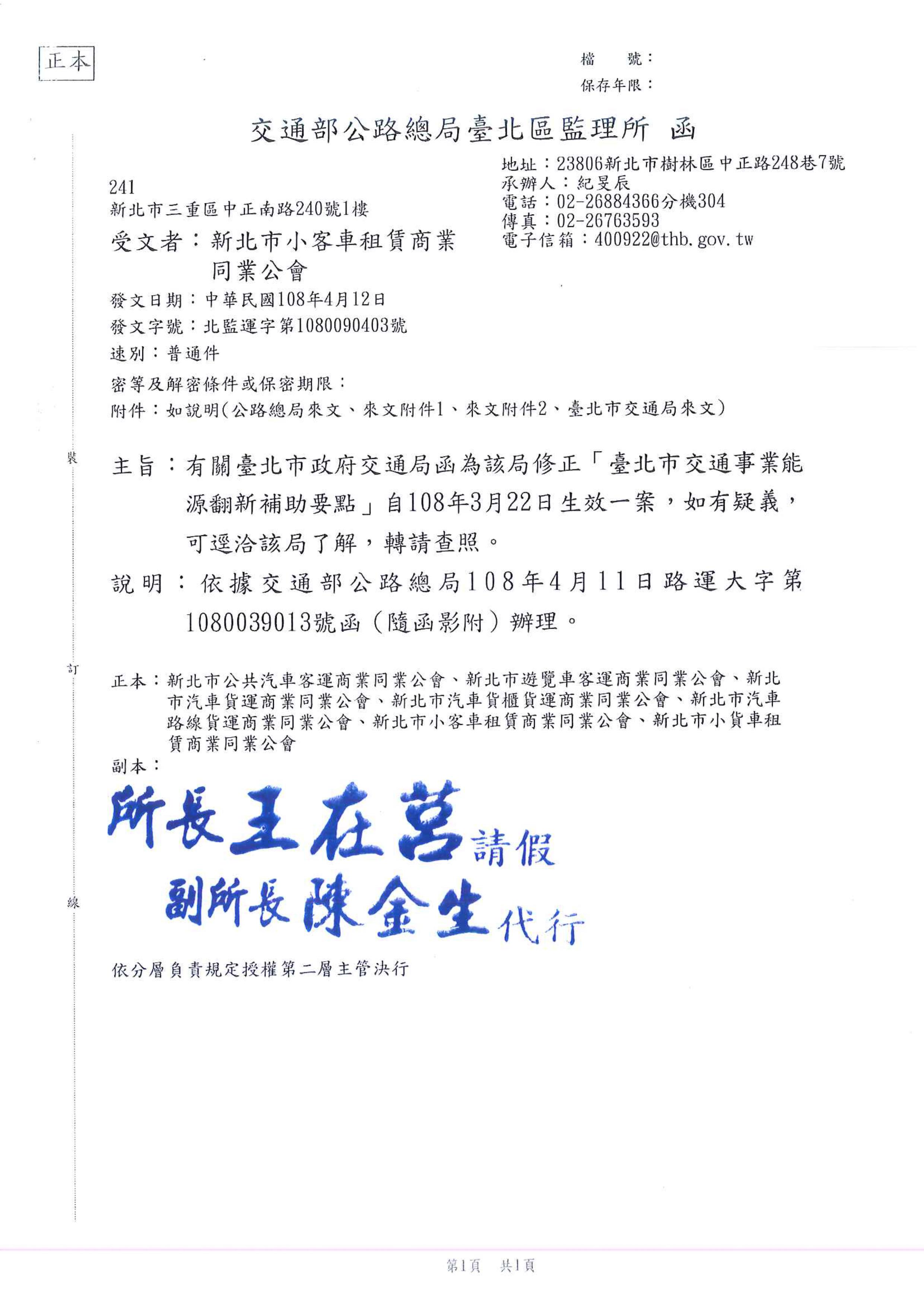 轉知交通事業能源翻新補助要點一案
