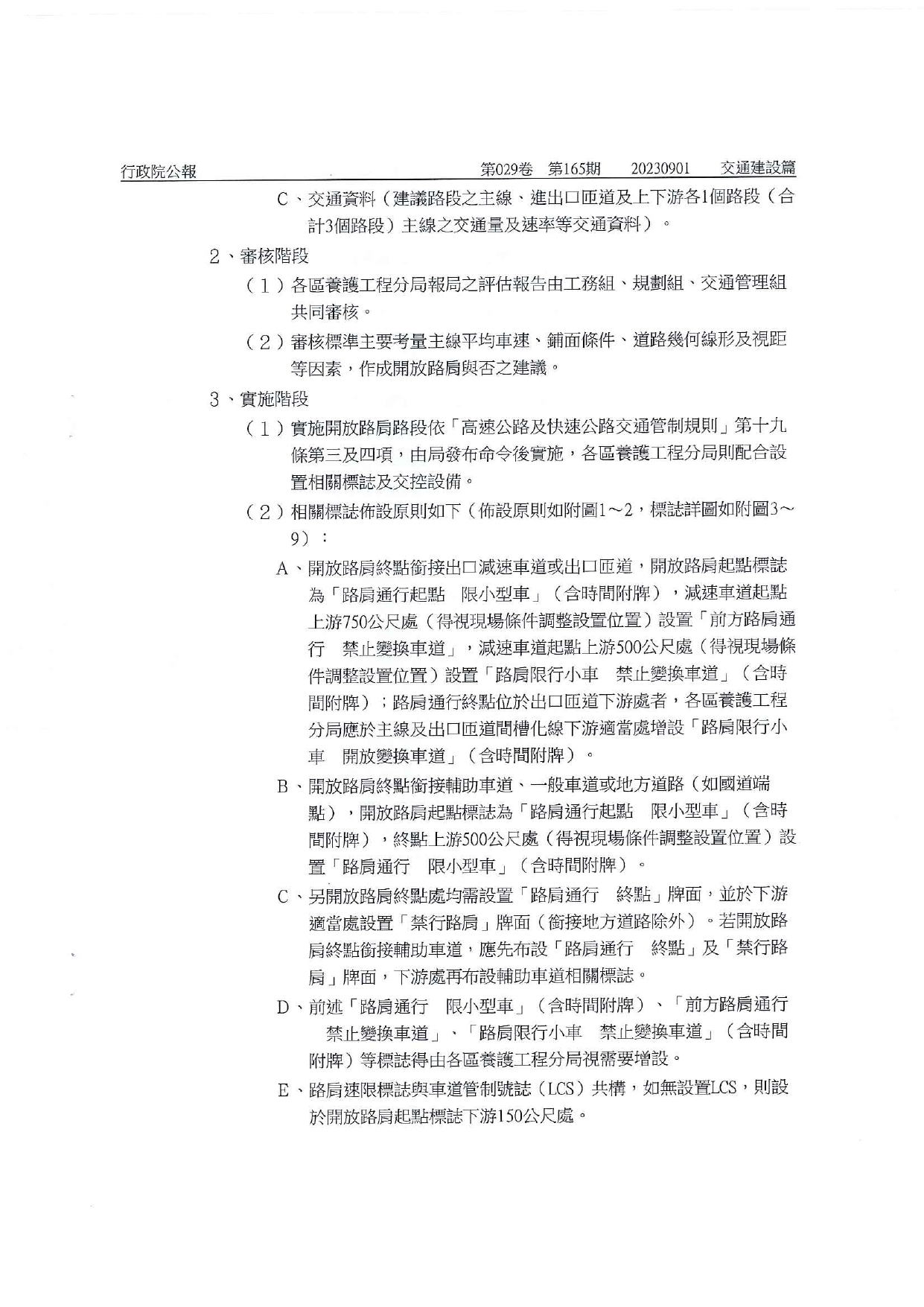 交通部高速公路局修正「國道主線開放路肩作業規定」