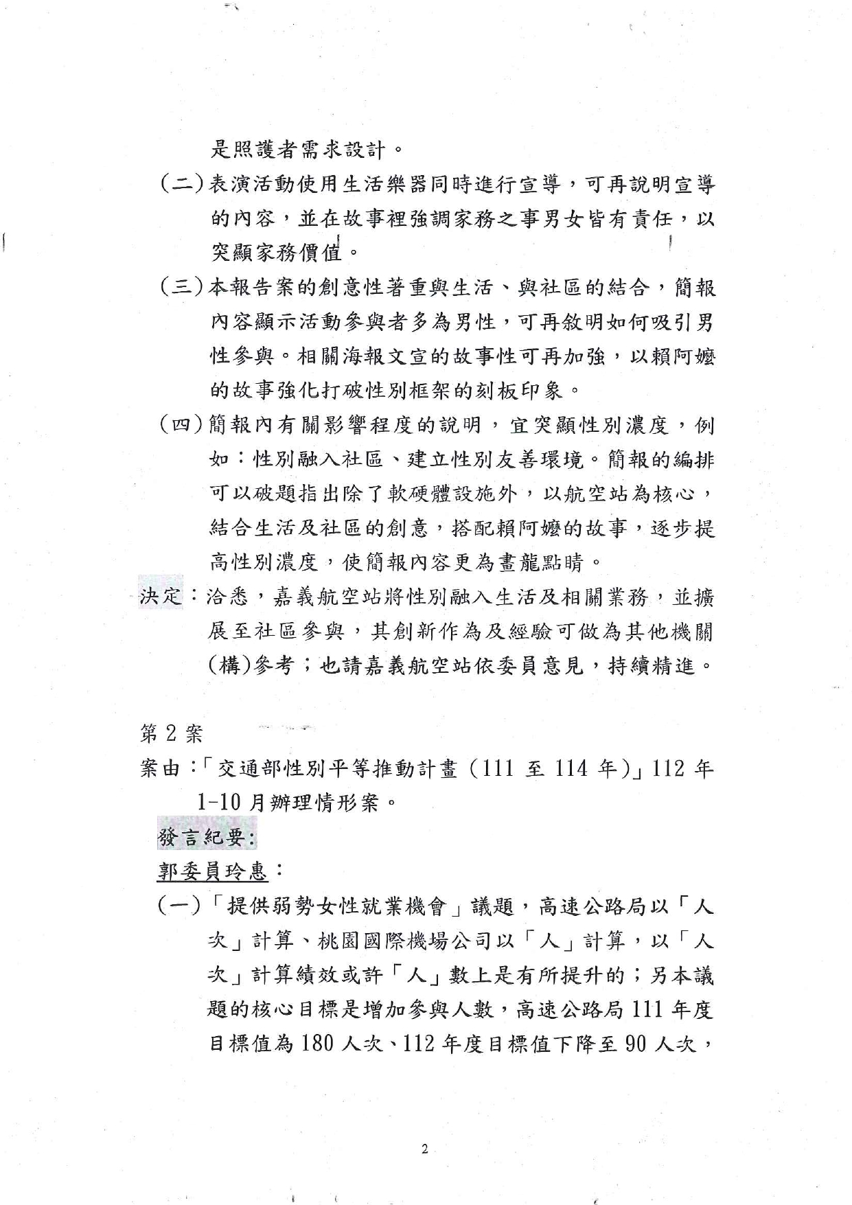 交通部性別平等專案小組第9屆第4次會議紀錄
