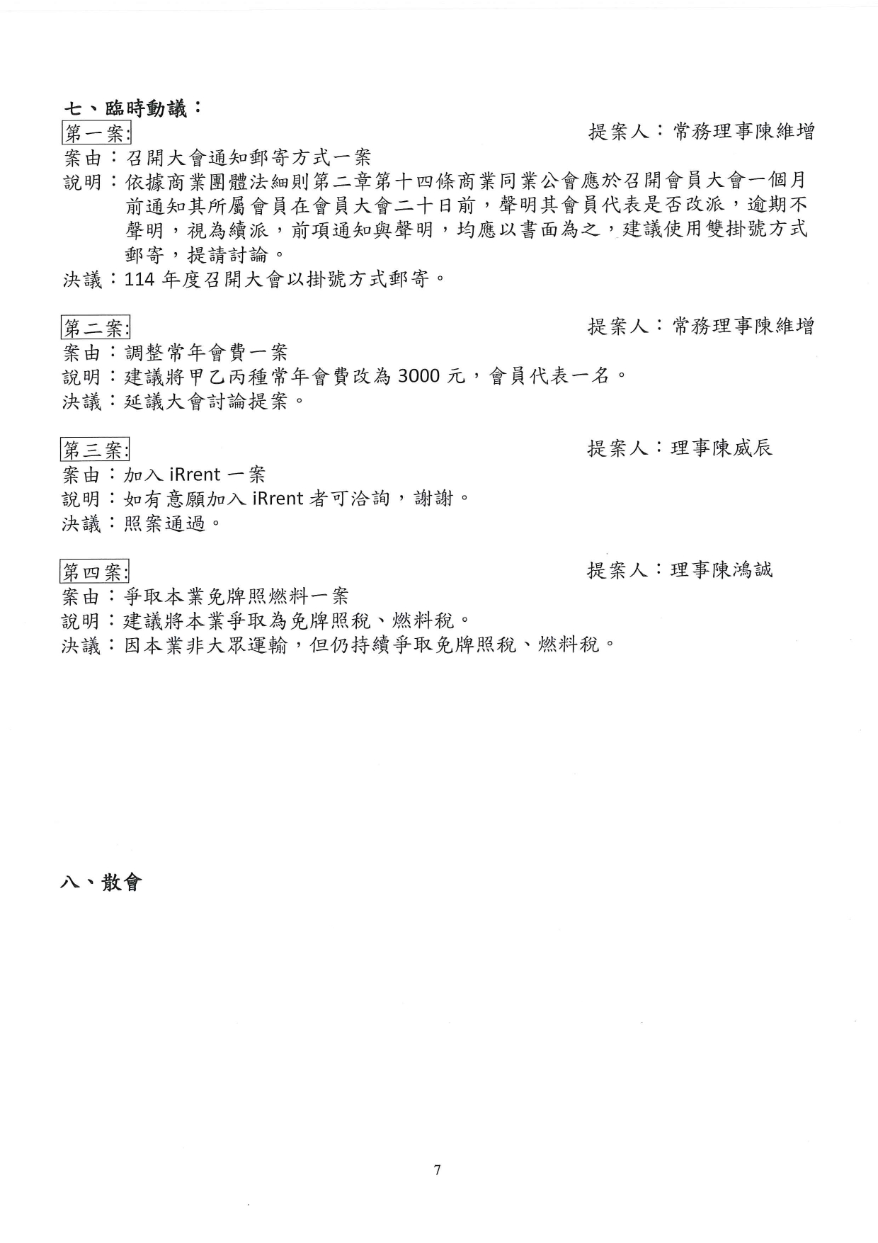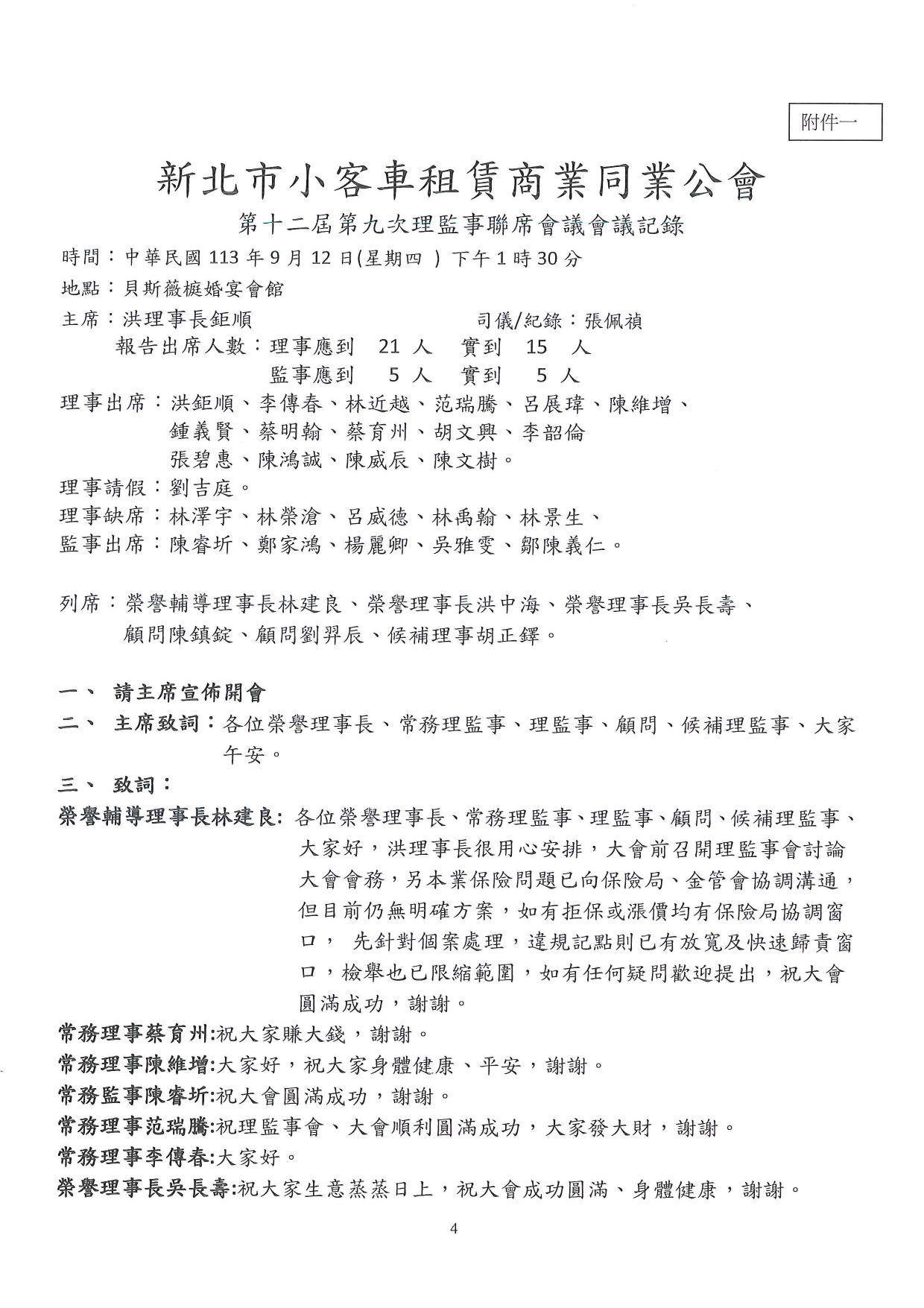 第十二屆第十次理監事聯席會議 會議紀錄