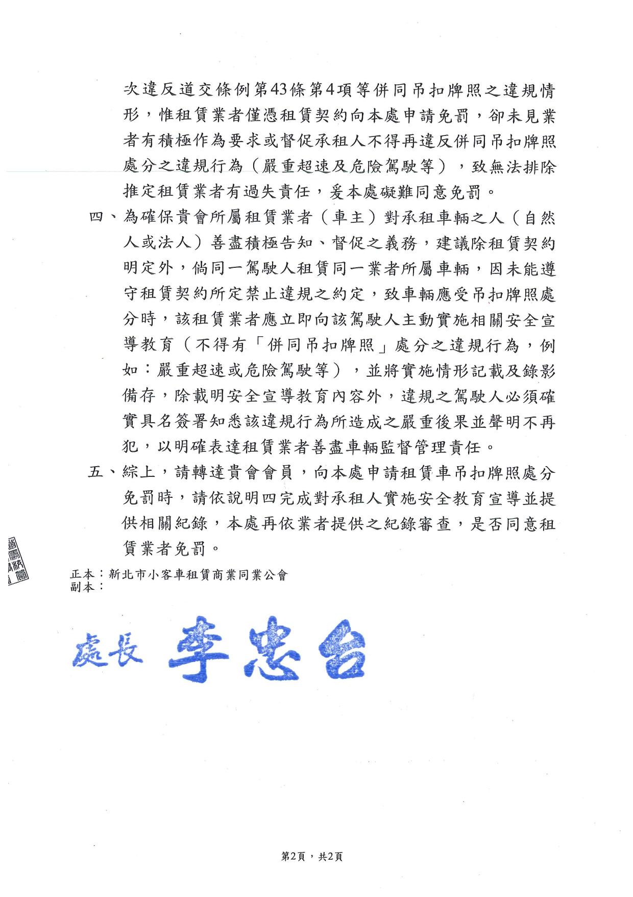 有關租賃公司所屬車輛違反道路交通管理處罰條例一案