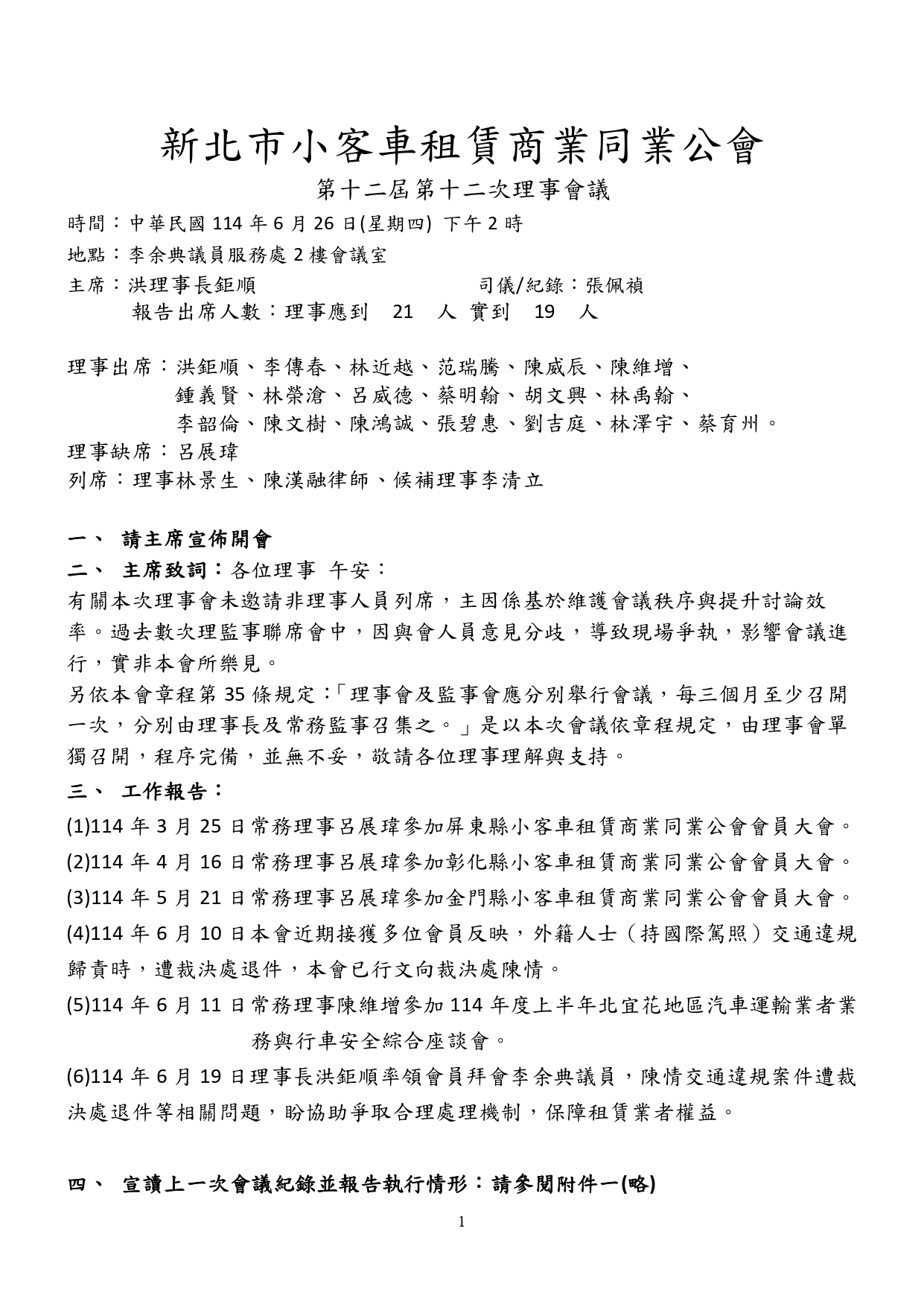 第十二屆第十二次理事會會議紀錄存查備考