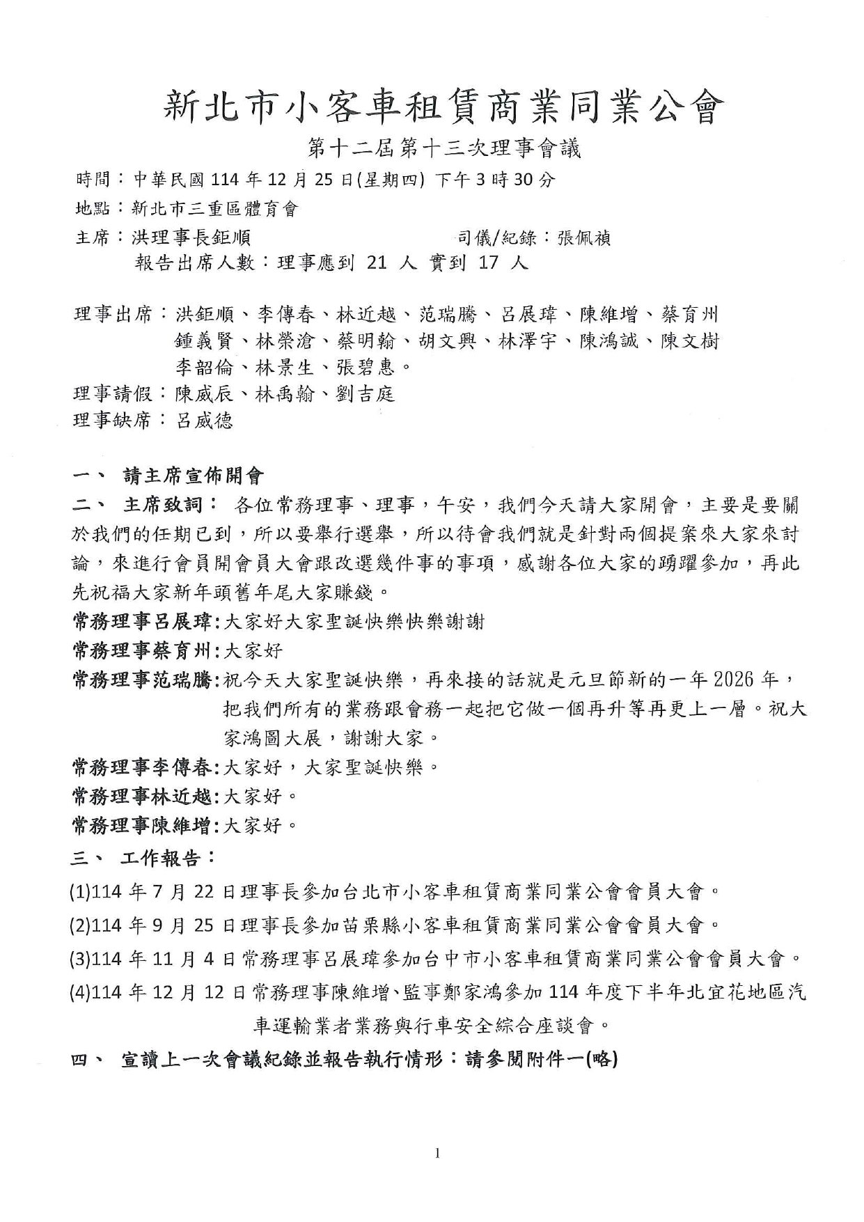 第十二屆第十三次理事會會議紀錄