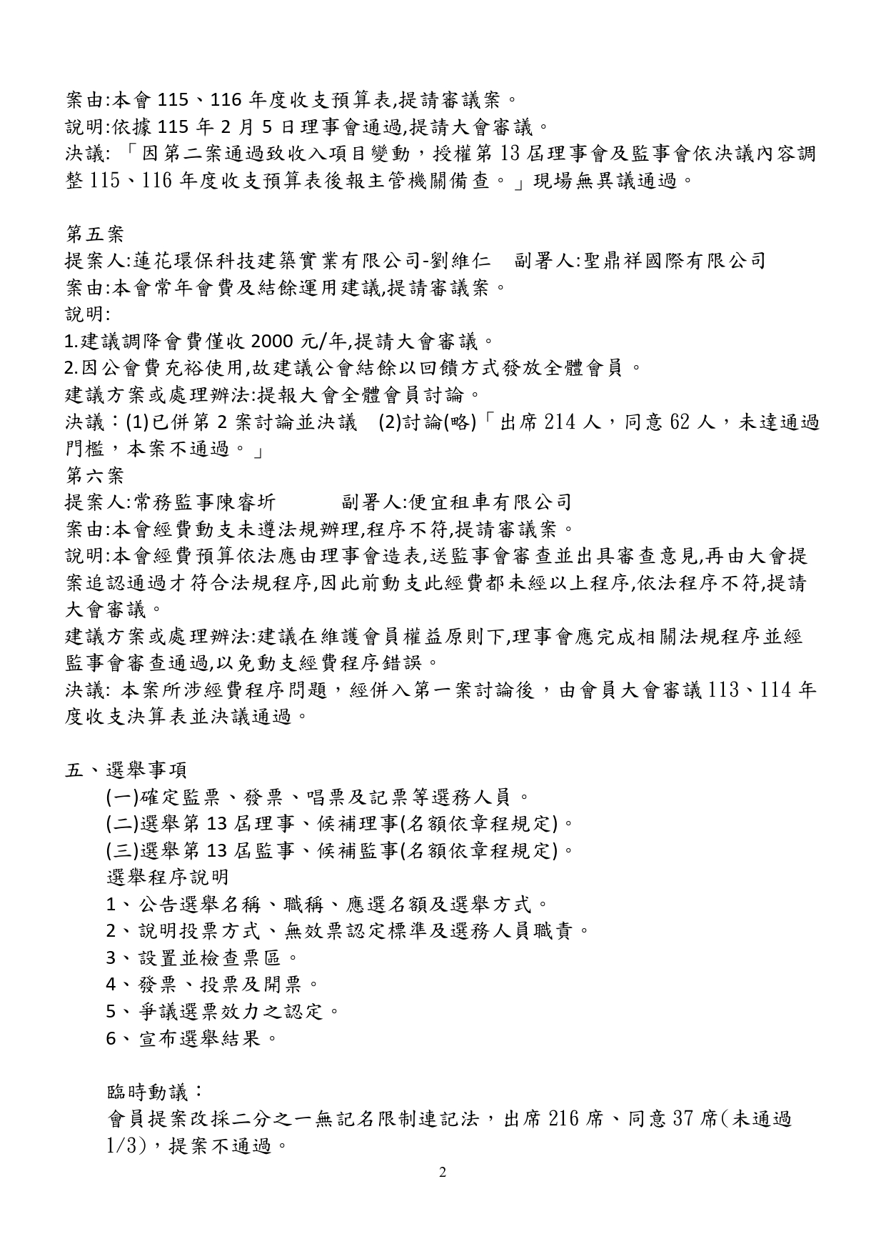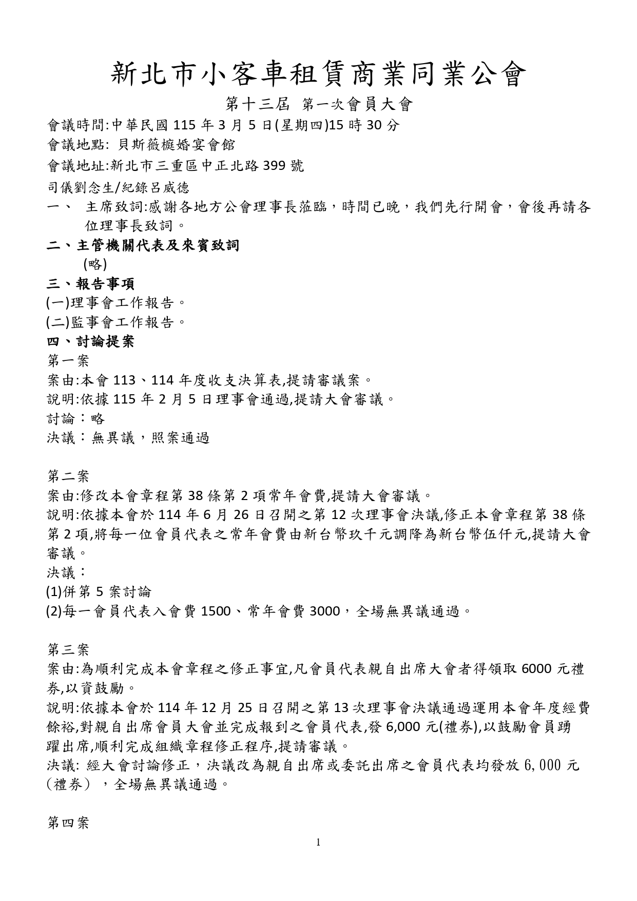 第13屆第1次會員代表大會會議紀錄