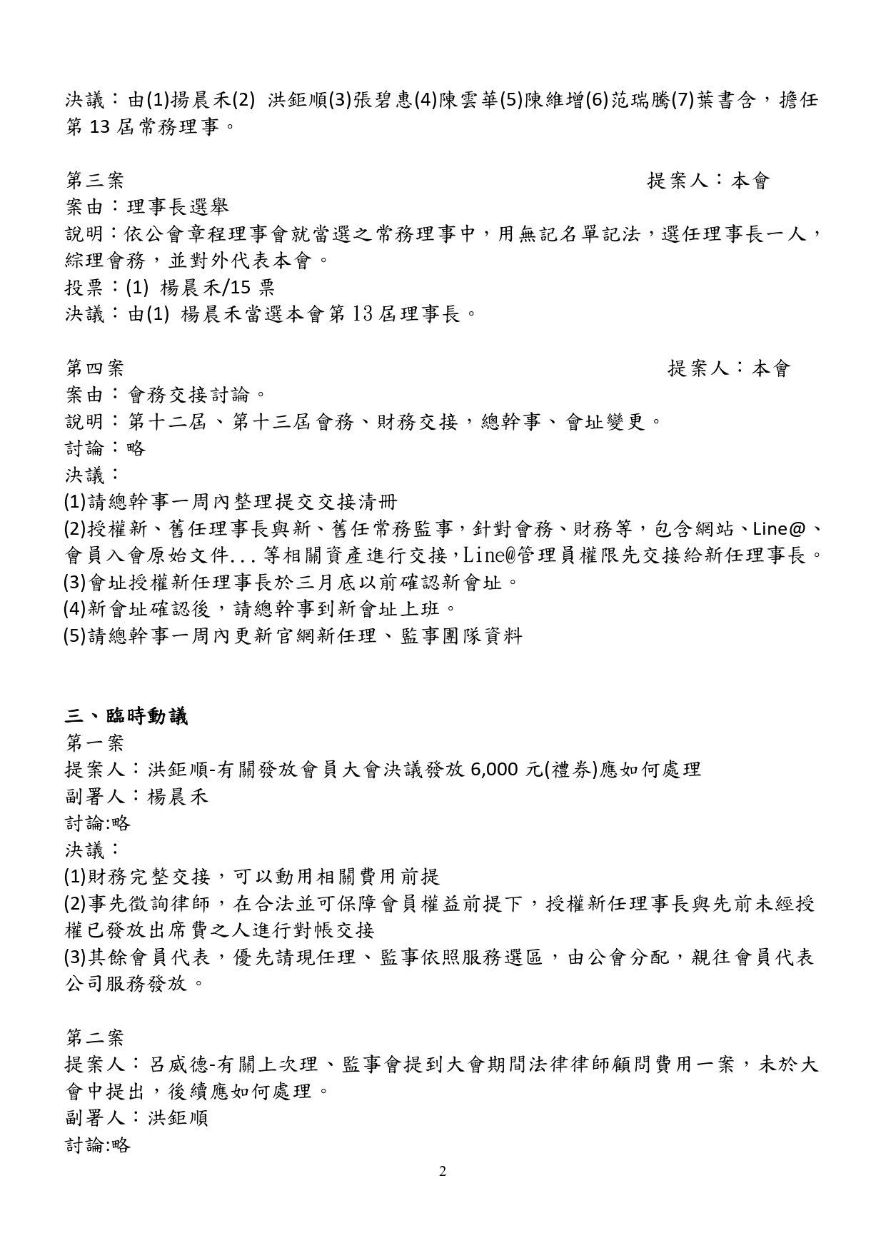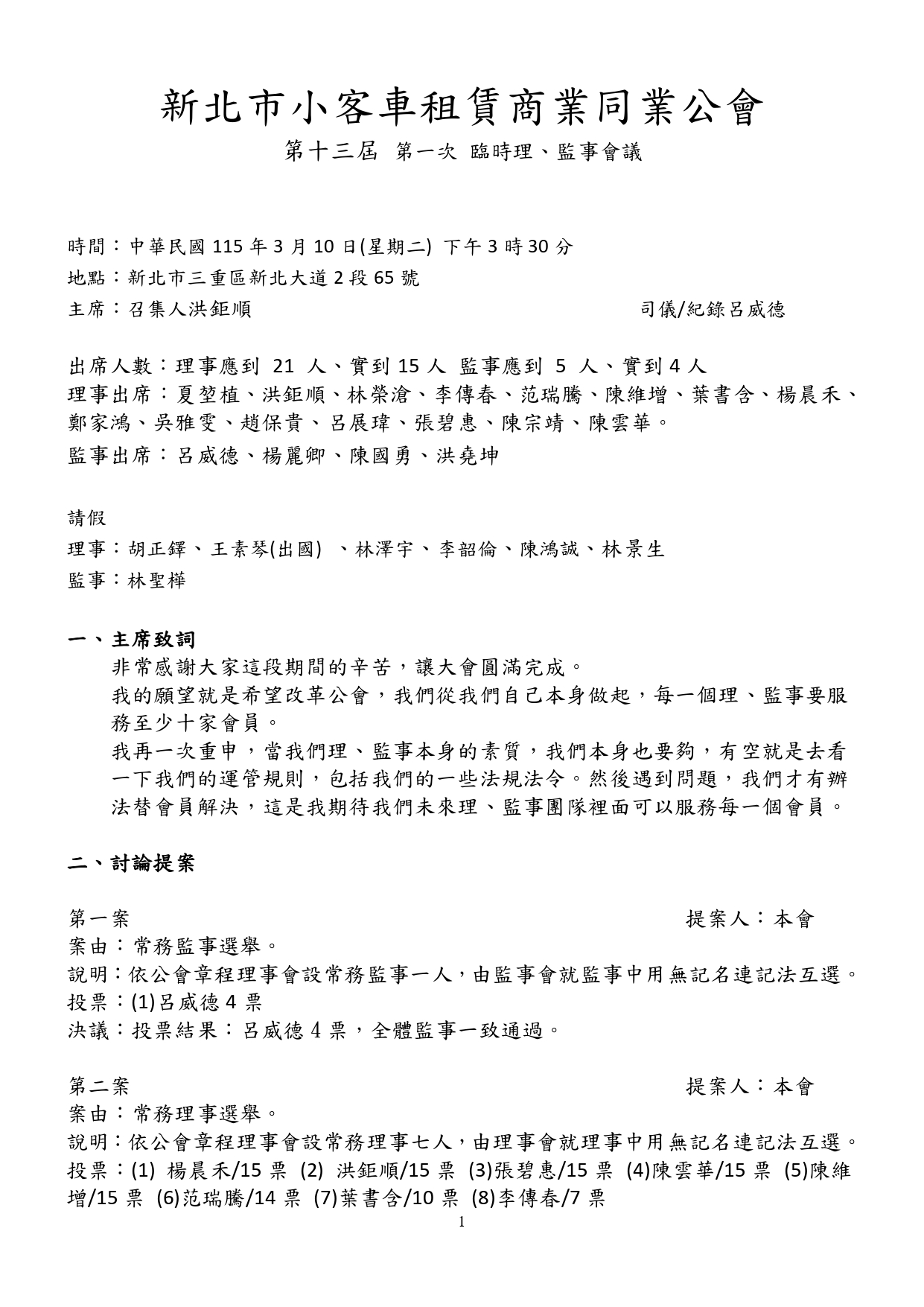 第13屆第1次臨時理監事會議紀錄